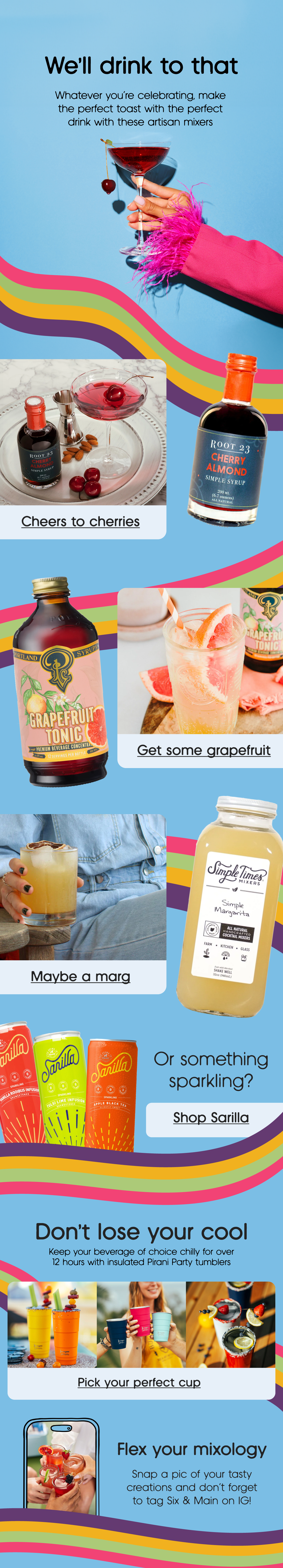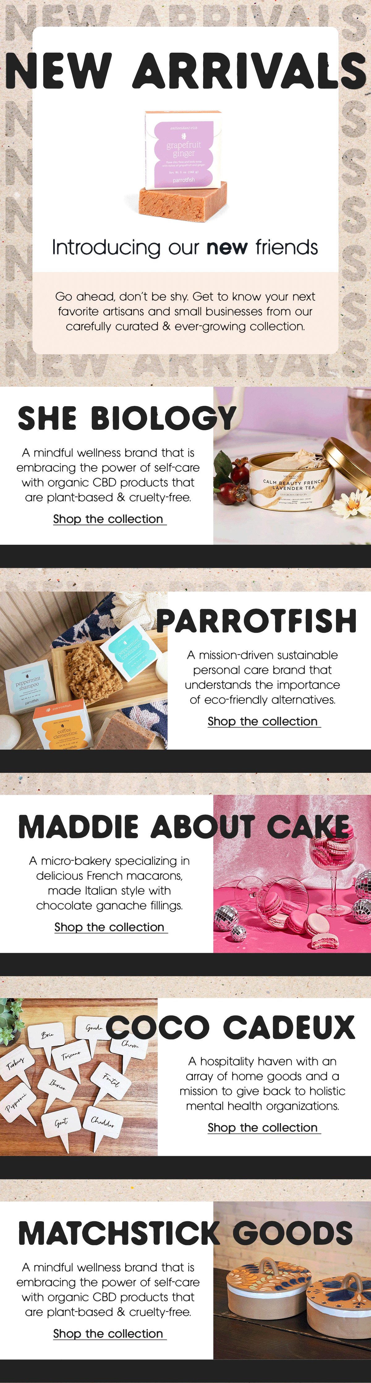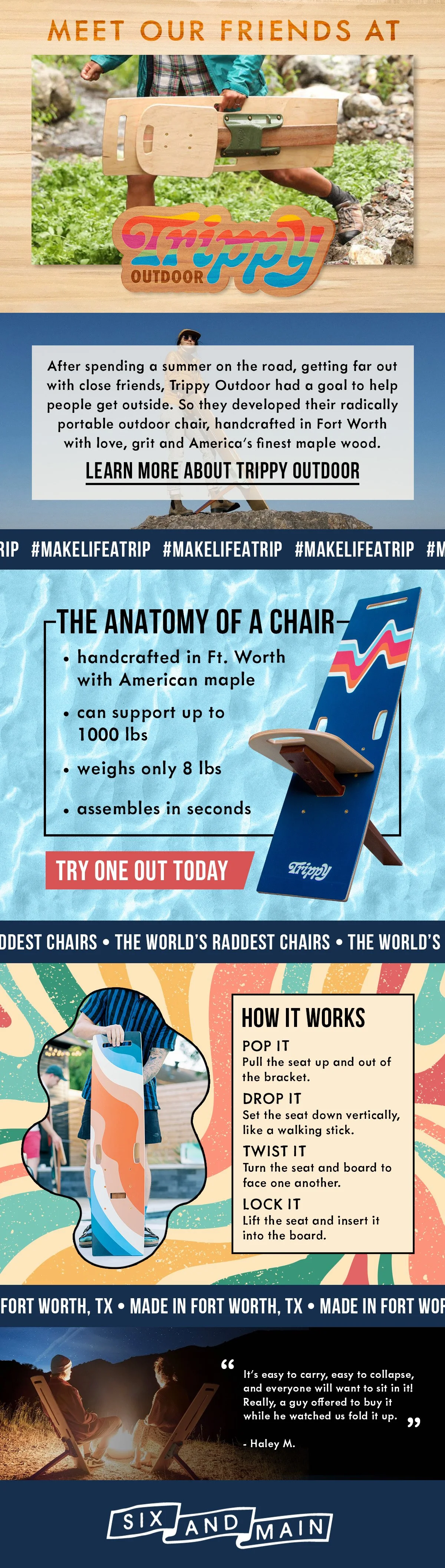 The feeling of a shopping an eclectic vendor market filled with gorgeous local art, goods and other artisan made treasures, packaged neatly into an effective email marketing campaign. That’s the idea with these emails for Six & Main, a local marketplace selling goods from the areas served by 6AM City newsletters. In the work featured below, I aimed to represent each brand and maker authentically, while staying true to the Six & Main brand.